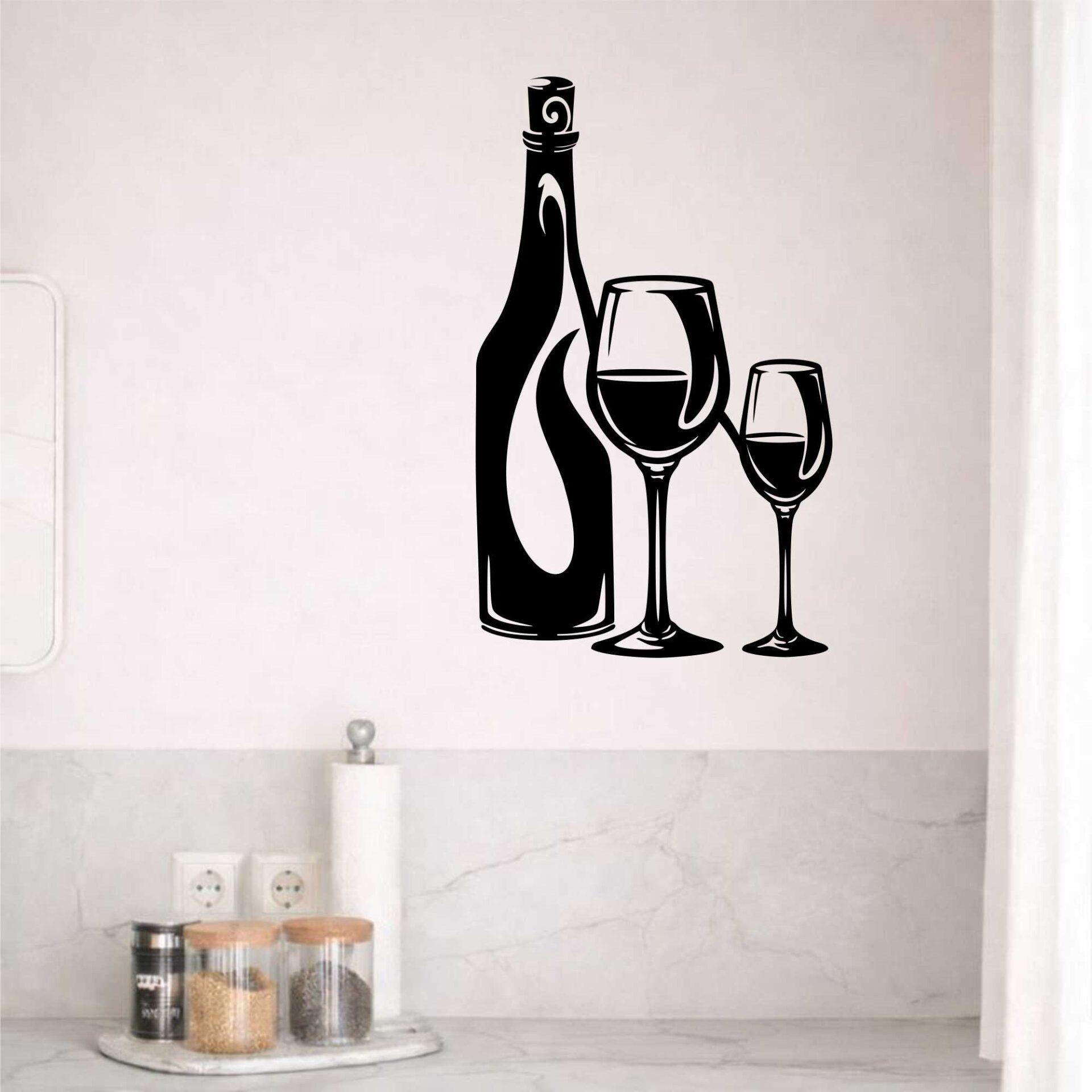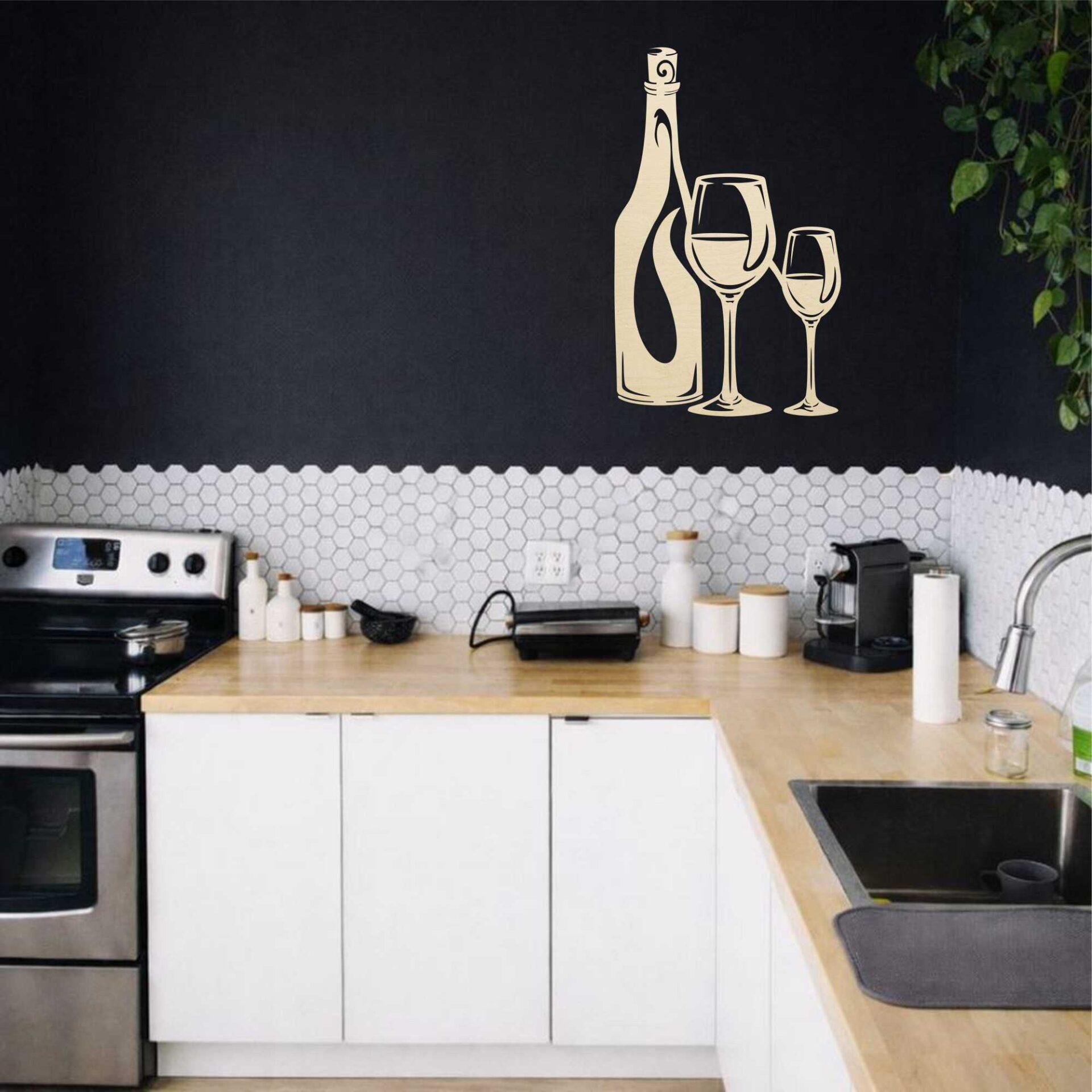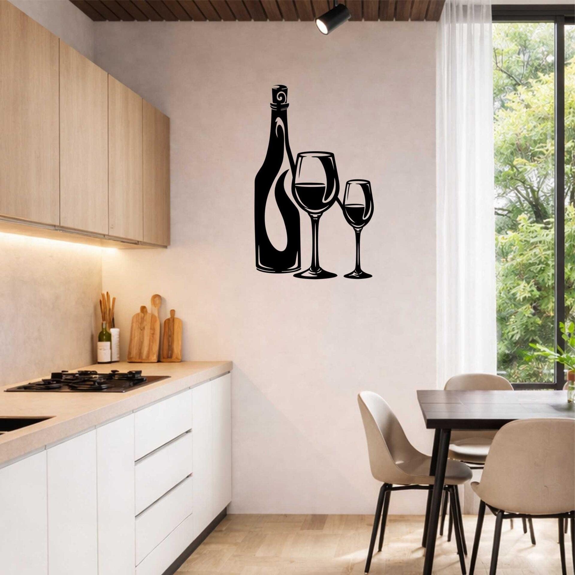 Obraz ażurowy Butelka i kieliszki wina to elegancka dekoracja ścienna inspirowana butelką i kieliszkami, idealna do kuchni, jadalni lub domowego barku.