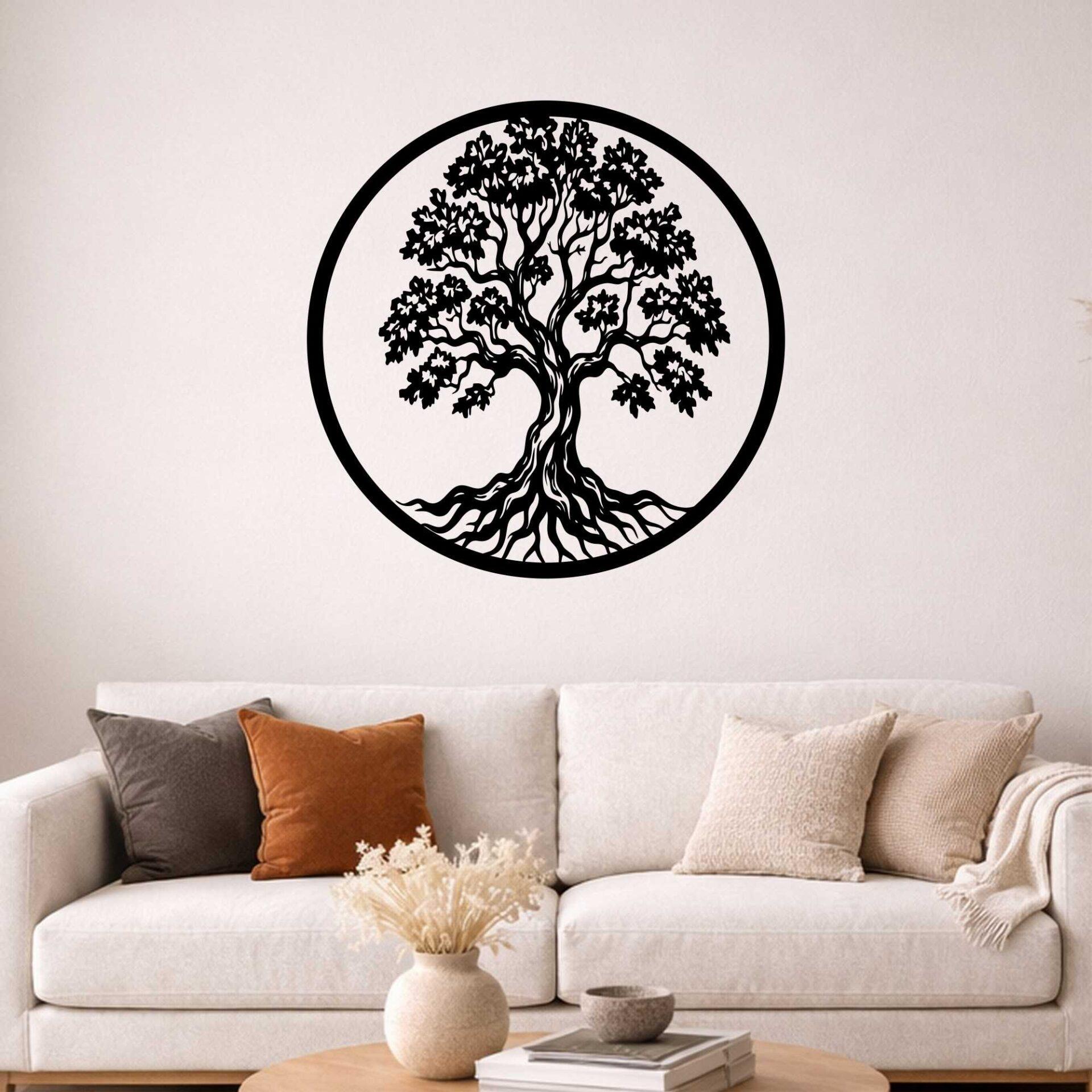 Motyw drzewa życia zamknięty w okręgu symbolizuje siłę, rozwój oraz harmonię z naturą.