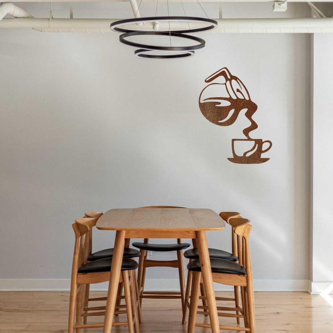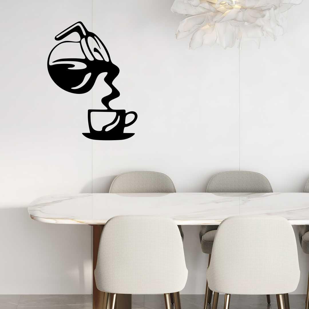Obraz ażurowy dzbanek do kawy to nowoczesna dekoracja ścienna do kuchni, inspirowana momentem nalewania świeżo parzonej kawy do filiżanki. Dynamiczna kompozycja z dzbankiem i filiżanką nadaje wnętrzu energii i kawowego charakteru. Pionowy układ dekoracji świetnie sprawdzi się nad blatem, stołem lub w kąciku kawowym. Ażurowa forma sprawia, że obraz jest lekki wizualnie i dobrze komponuje się z jasnymi ścianami. Taki obraz ażurowy do kuchni pasuje do aranżacji nowoczesnych, loftowych i minimalistycznych. To idealny wybór dla miłośników kawy i estetycznych dodatków. Dekoracja sprawdzi się także jako oryginalny prezent.