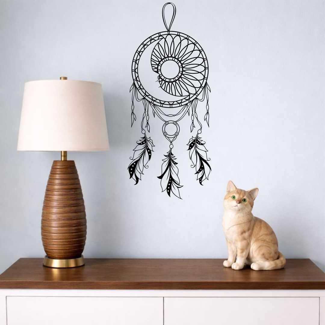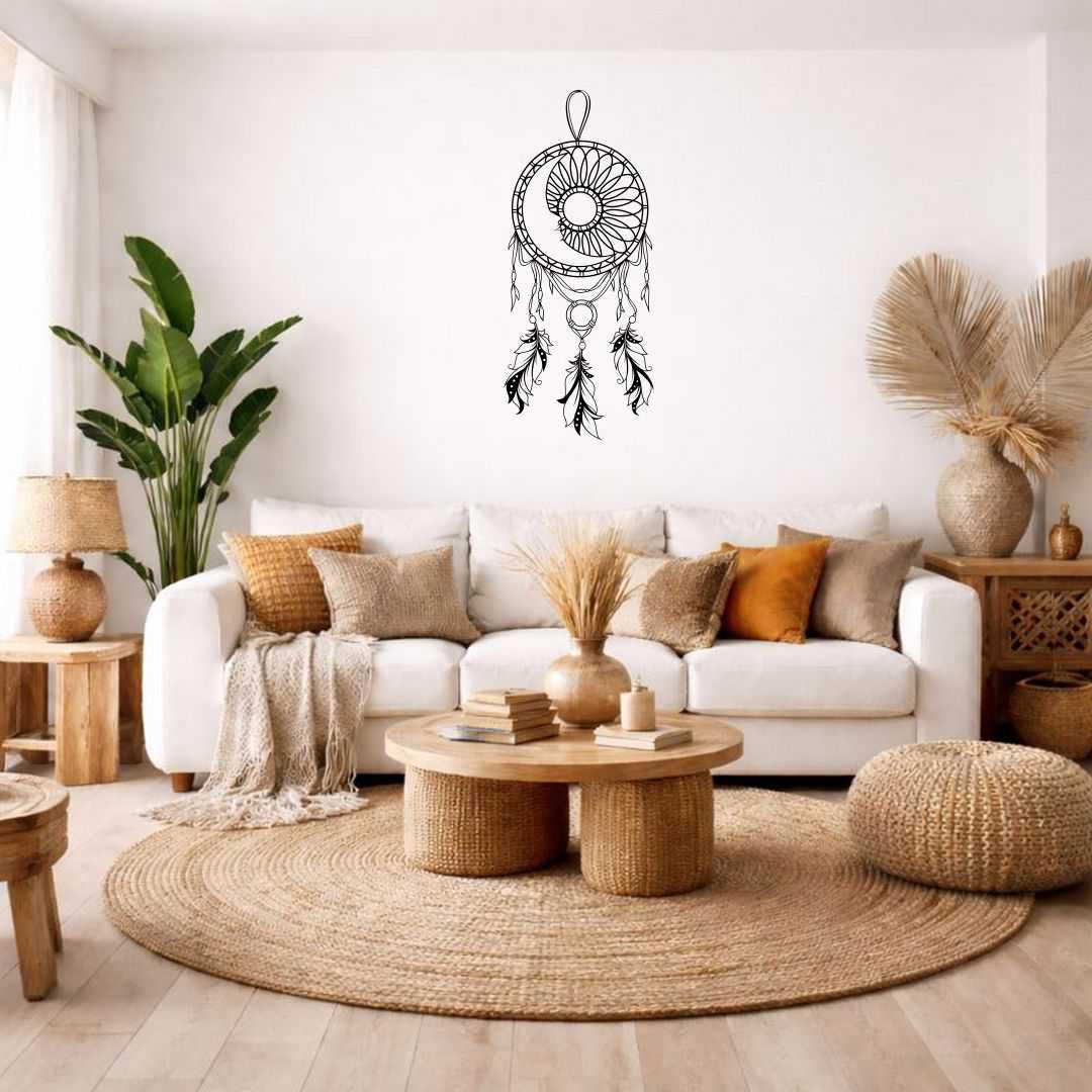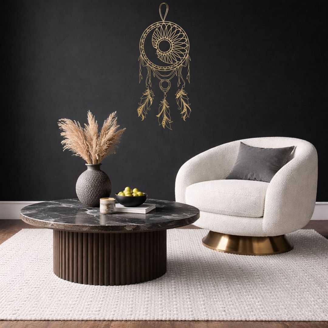 Obraz ażurowy łapacz snów księżyc to wyjątkowa dekoracja ścienna inspirowana spokojem, nocą i symboliką ochrony snów. Motyw księżyca w połączeniu z delikatną ażurową siatką i piórami tworzy harmonijną, lekką kompozycję. Dekoracja doskonale pasuje do wnętrz w stylu boho, naturalnym i minimalistycznym. Dzięki swojej formie nie przytłacza przestrzeni i pięknie współgra ze światłem. Idealnie sprawdzi się w sypialni, salonie lub pokoju relaksu. Precyzyjne wycięcie podkreśla detale i nadaje całości elegancji. To również doskonały pomysł na prezent.