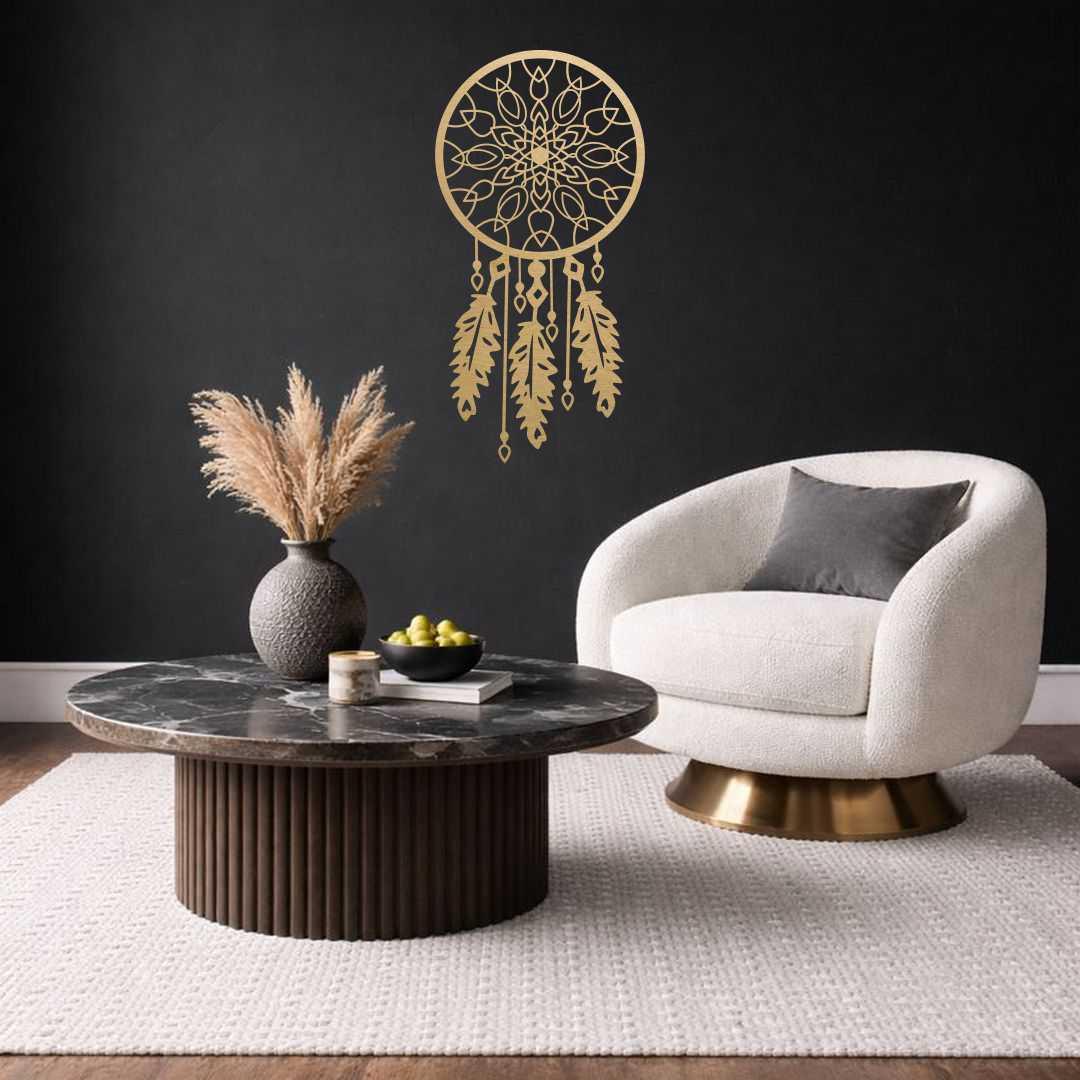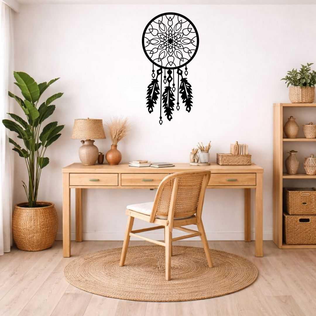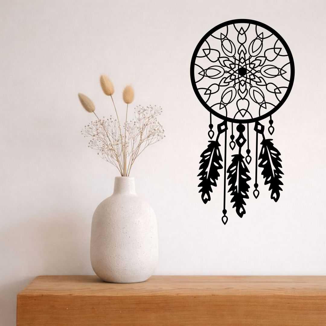 Obraz ażurowy łapacz snów mandala to harmonijna dekoracja ścienna inspirowana symboliką spokoju i równowagi. Geometryczny wzór mandali w połączeniu z formą łapacza snów tworzy nowoczesną, a jednocześnie lekką kompozycję. Ażurowa konstrukcja sprawia, że dekoracja pięknie współgra ze światłem i nie przytłacza wnętrza. Doskonale pasuje do sypialni, salonu oraz przestrzeni w stylu boho lub minimalistycznym. Precyzyjne wycięcie podkreśla detale i nadaje całości elegancki charakter. To dekoracja, która wprowadza do wnętrza spokój i harmonię. Świetnie sprawdzi się także jako prezent.