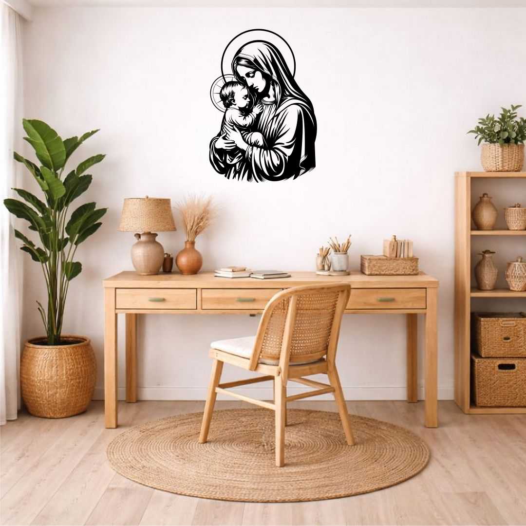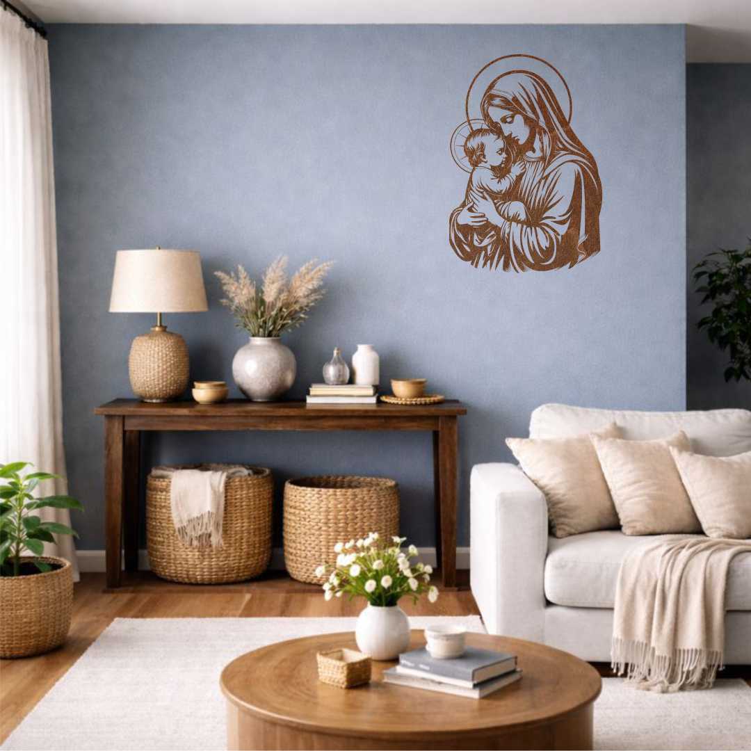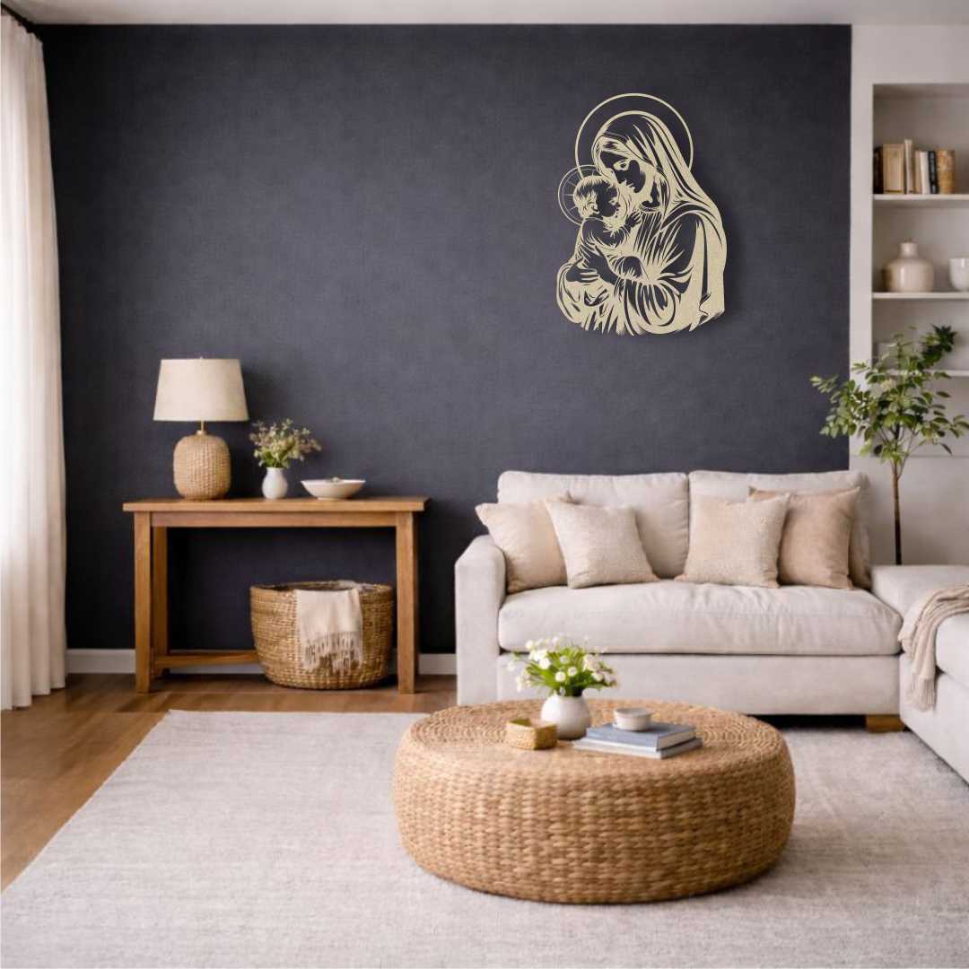 Obraz ażurowy Maryja z Dzieciątkiem Jezus to pełna czułości dekoracja religijna, która wprowadza do wnętrza atmosferę spokoju i bliskości. Delikatny motyw matki trzymającej dziecko podkreśla miłość, opiekę i duchowe ciepło. Ażurowa forma sprawia, że dekoracja jest lekka wizualnie i nie przytłacza przestrzeni. Obraz doskonale sprawdzi się jako dekoracja religijna na ścianę w salonie, sypialni lub pokoju dziecka. Minimalistyczny styl pozwala łatwo dopasować go do nowoczesnych i klasycznych aranżacji. Różne rozmiary umożliwiają dobranie odpowiedniej wersji do wielkości ściany. To także wyjątkowy pomysł na prezent z okazji chrztu lub innych rodzinnych uroczystości.