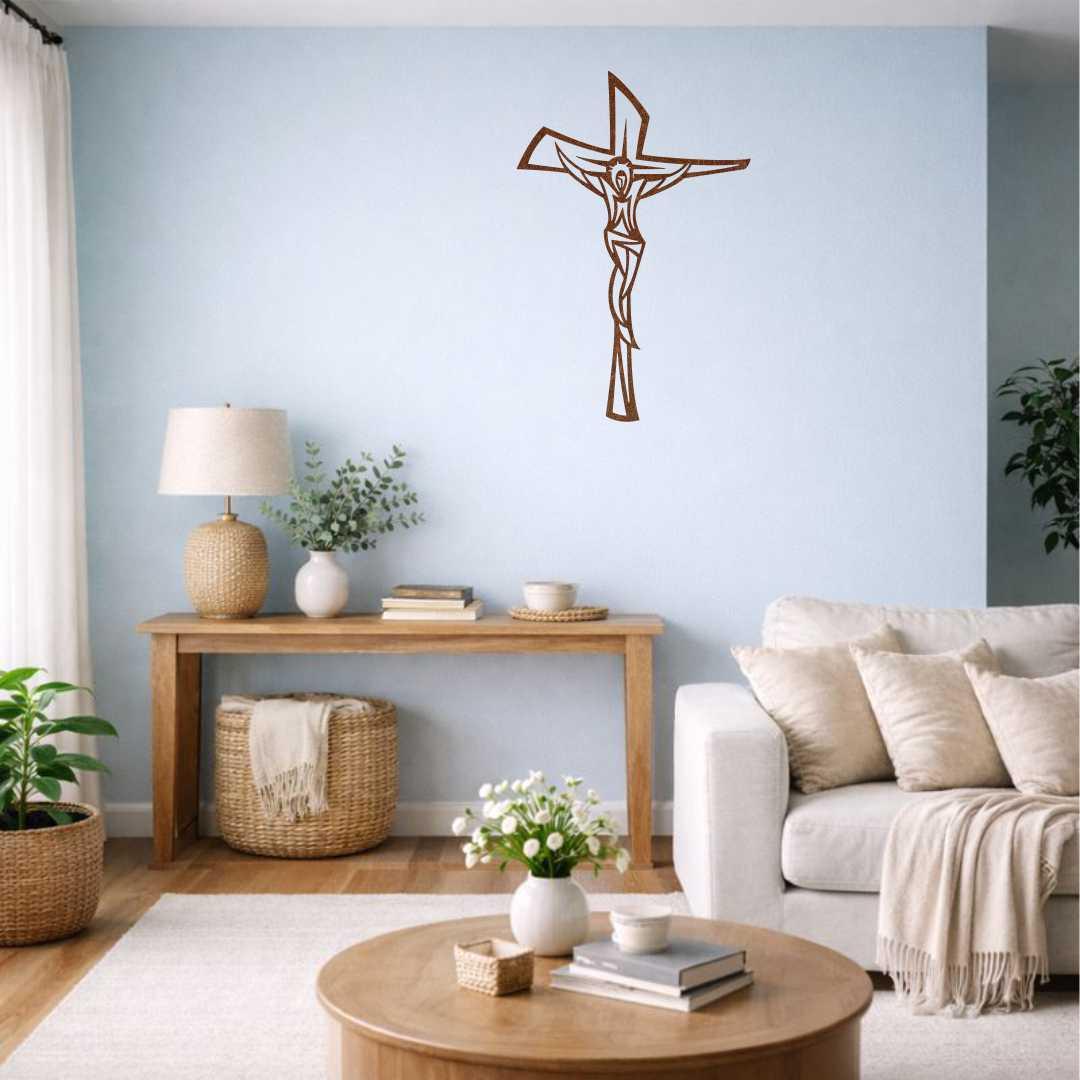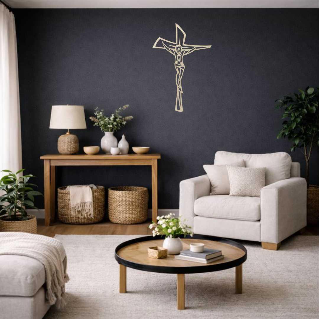Obraz ażurowy Ukrzyżowanie Chrystusa to wyrazista dekoracja religijna, która w symboliczny sposób podkreśla duchowy charakter wnętrza. Stylizowana, ażurowa forma krzyża i postaci Chrystusa tworzy mocny, ale jednocześnie estetyczny akcent na ścianie. Minimalistyczne linie nadają dekoracji lekkości i sprawiają, że nie dominuje przestrzeni. Obraz doskonale sprawdzi się jako dekoracja religijna na ścianę w salonie, sypialni lub domowym miejscu modlitwy. To propozycja dla osób ceniących prostą formę i głęboką symbolikę. Różne rozmiary pozwalają łatwo dopasować dekorację do wielkości ściany. Całość stanowi również wartościowy i ponadczasowy pomysł na prezent.