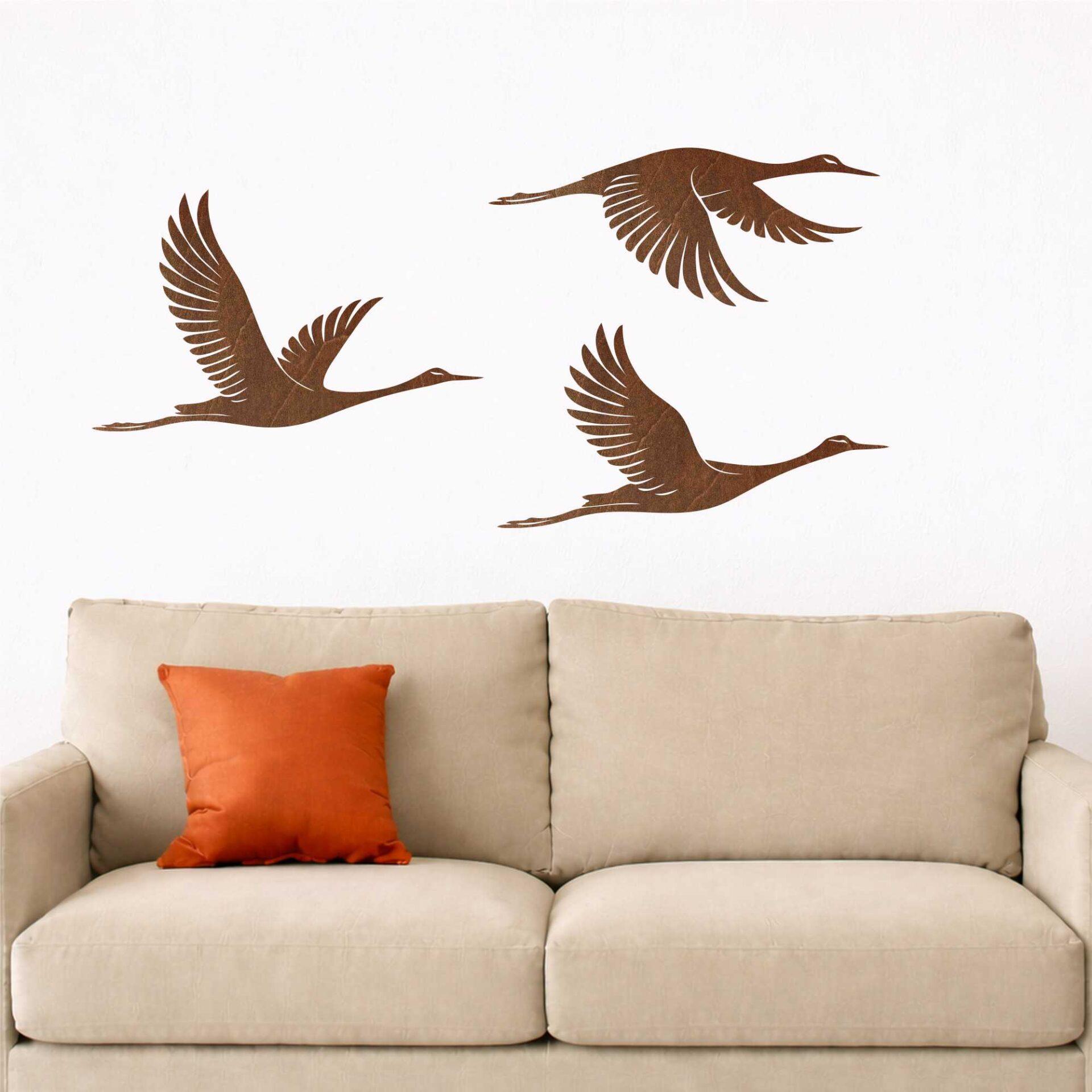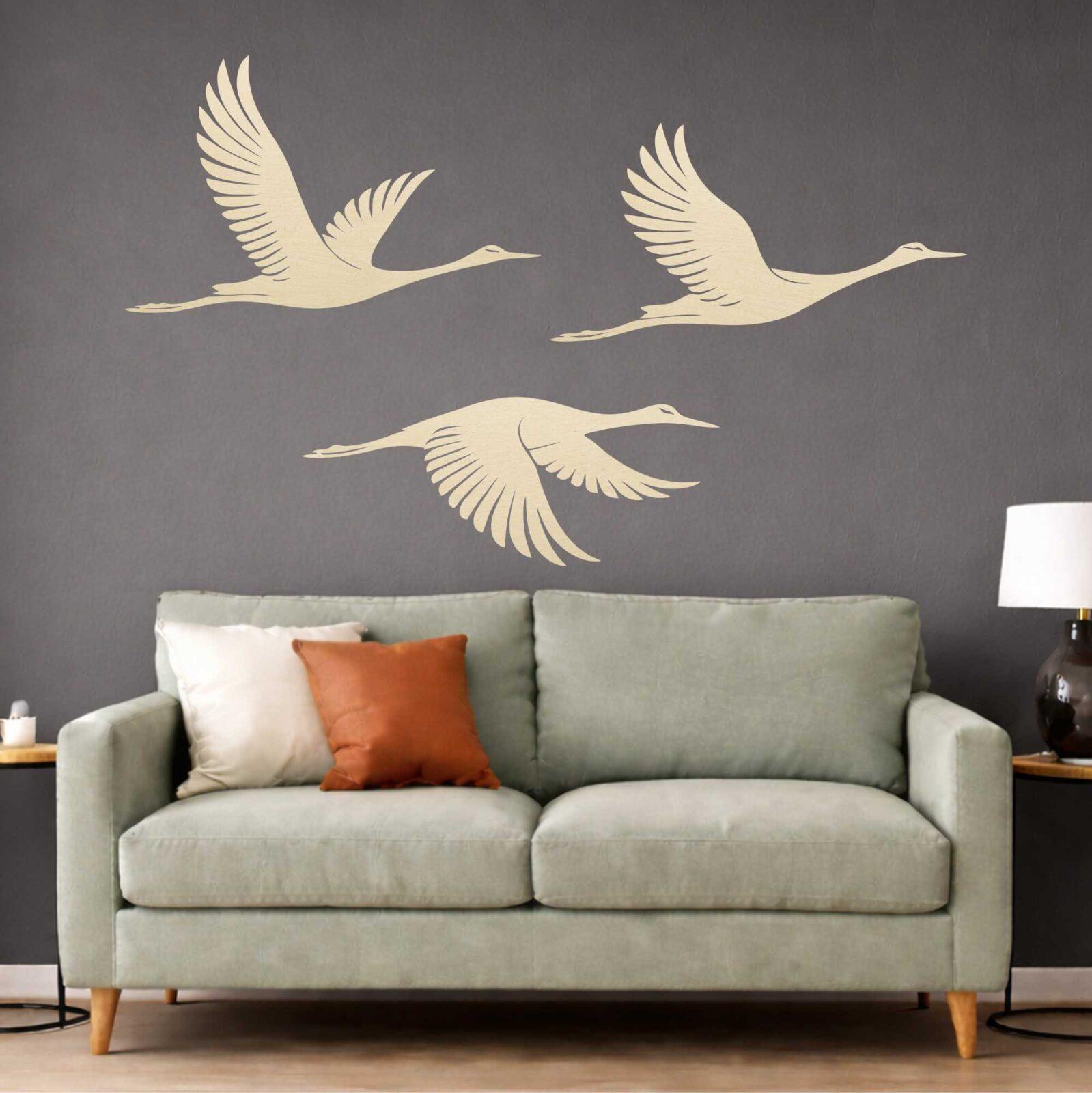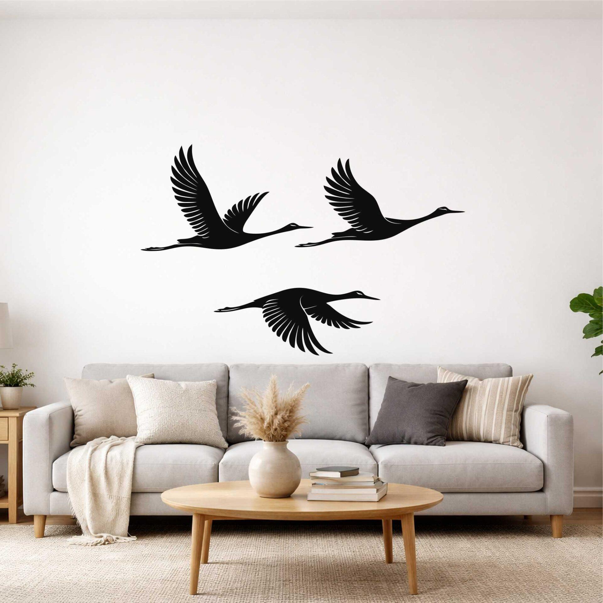 💡 Ważne: łączna szerokość kompozycji zależy od odstępów między ptakami i sposobu ich ułożenia na ścianie.